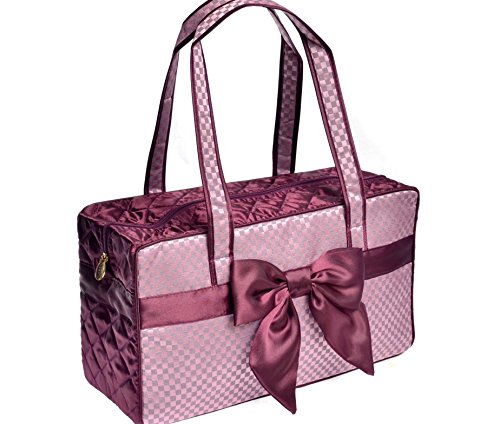 Studio : Naraya Publisher : Naraya Binding : Baby Product Product Description Product Description Classic Timeless ! Patterns Checkered Plum on Plum background for outstanding satin appearance! Beautiful Satin Plum Bow on the front of the bag 2 open pockets inside bag Zip closure with gold hook branded NaRaYa Double soft Plum Handles Exceptional Quality Perfect finishes Inside: PVC to protect the contents of your bag of water and rain. The PVC is covered by a beautiful fabric branded NaRaYa Dimensions: L 32cm * W 18cm * H 11cm Inches: L 12.59" * W 7.08" * H 4.33" Height of handles: 20cm ( 7.87" ) This same bag is available in black, pink, purple, plum, gold, brown, blue