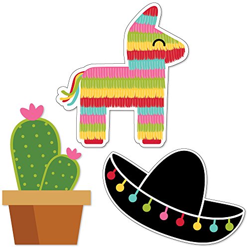 -. Feature : Let's Fiesta - DIY Shaped Mexican Fiesta Party Cut-Outs - 24 Count / 8 Donkey Pinata paper die cuts (2.75" X 3") / 8 Cactus paper die cuts (2" X 3") / 8 Sombrero paper die cuts (3" X 2")