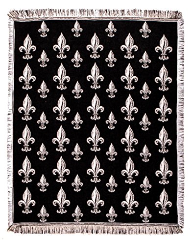 Black Fleur De Lis Fringed Afghan Throw Blanket 60" x 50"