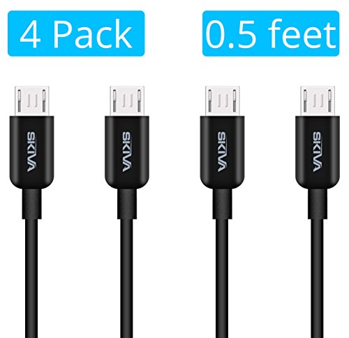Micro USB Cables [4-Pack] - Skiva USBLink Premium Short Length (6" / 0.5ft) High Speed USB 2.0 Type-A Male to Micro-B Sync and Charge Cord for Android / Windows, Samsung, HTC, LG (Black) [Model:CB129]