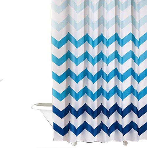 Smartkitch Mildew-Free Water-Repellent Zeno Shower Curtain, 72 by 72", Navy/White