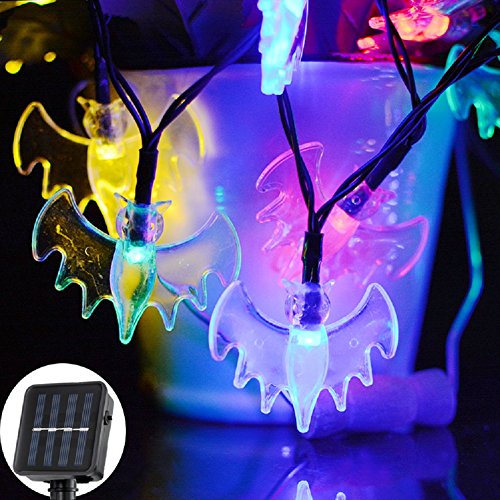 Outdoor Halloween Solar Lights 30 LED Bat Lights String for Patio Garden Fairy String Lights 6M Halloween /Christmas Decoration (multicolor)