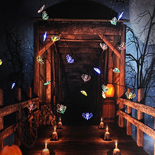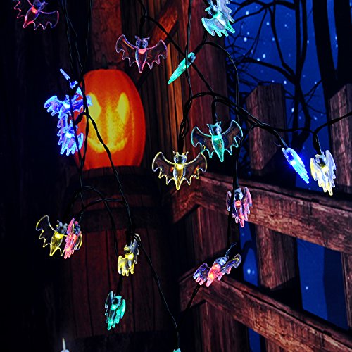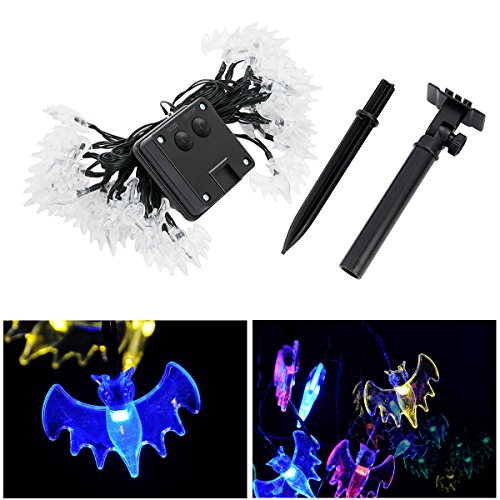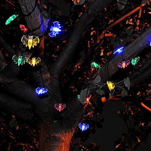 - 【TWO DIFFERENT MODES】Steady/ flash with multicolor light., solar-powered decorative lights with 30 pieces of LEDs Bat String Light to Halloween Light Show, Trick or Treat Party Decoration.