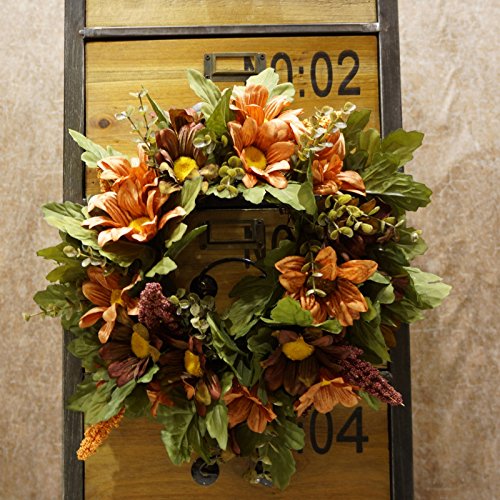 Decorative Seasonal Front Door Wreath Best Seller - Handcrafted Wreath for Outdoor Display in Fall, Winter, Spring, and Summer 13 inches (Coffee color + orange)