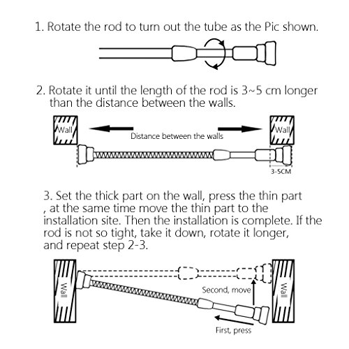 Easy Installation: Spring tension rod, no tools and screws are required when installing our tension rod. Instructions included.