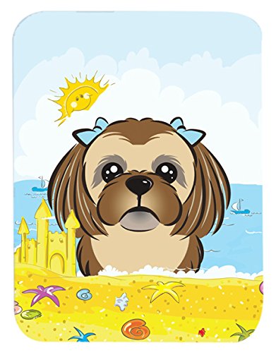 Caroline's Treasures BB2117LCB "Chocolate Brown Shih Tzu Summer Beach" Glass Cutting Board, Large, Multicolor