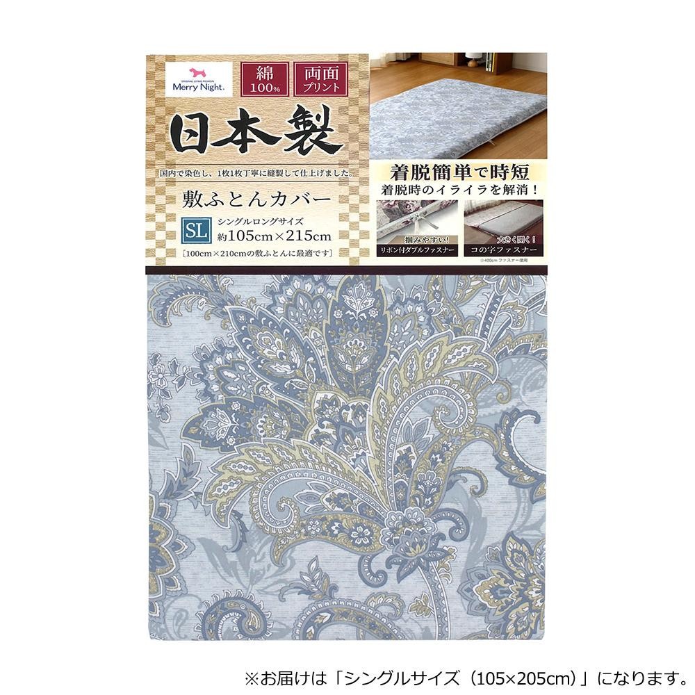 国内で染色し、1枚1枚丁寧に縫製された敷ふとんカバーです。着脱が簡単にできる工夫が施されています。