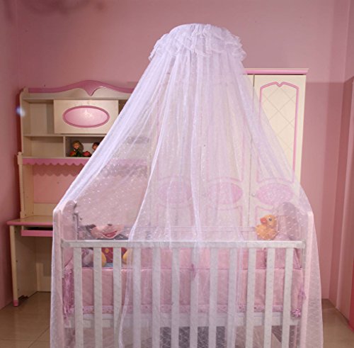 About the product: Featuring an opening, easy to get to your baby when he/she is crying The mosquito net is not only preventing mosquitoes, but also to create a good atmosphere for sleep, effectively block the dust Protect baby's eye offending by dazzling light, let the baby sleep more comfortable Lace trim- falling down from the hoop are two layers of draping lace, offering a nice look Can be used over cribs, toddler beds; Great addition to a baby nursery/little girls, boys room Detailed size: Top diameter of net: about 35cm/14" Height of net: 200cm/79" The bottom circumference of net: 500cm/197" Note: If you choose the "Net without stand", we sent Net only. If you choose the "Net with stand", we will send the Net with clip-on stand 0 |