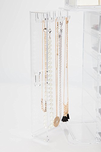 On the 2 sides locate a closet design with hooks that is special made for a necklace display all with nice crystal clear acrylic