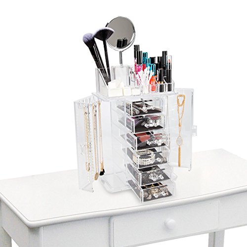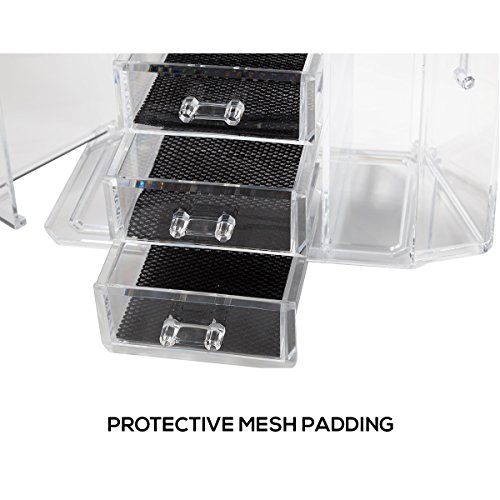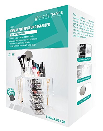 ClosetMate Clear Acrylic Jewelry Makeup Organizer Set - 6 Cushioned Drawers With Two Sided Mirror - Great for Organizing your Lipstick Nail Polish Makeup Brushes keep Vanity Dresser Organized