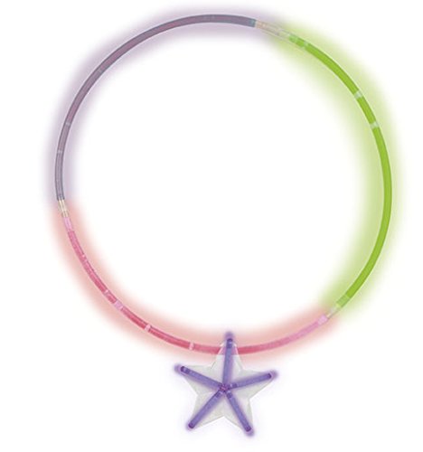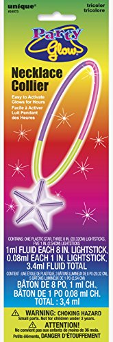- Glow-in-the-dark necklace contains one plastic star, three 8-inch light sticks, and five 1-inch light sticks