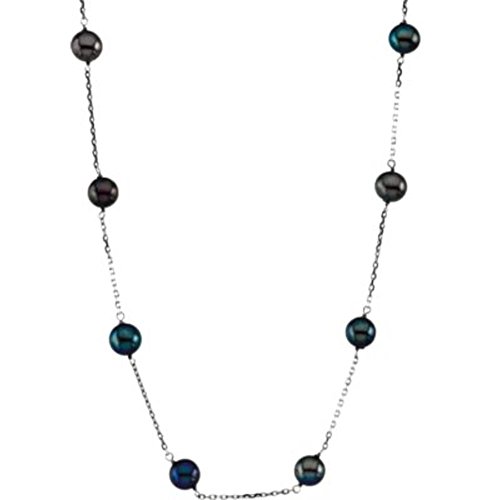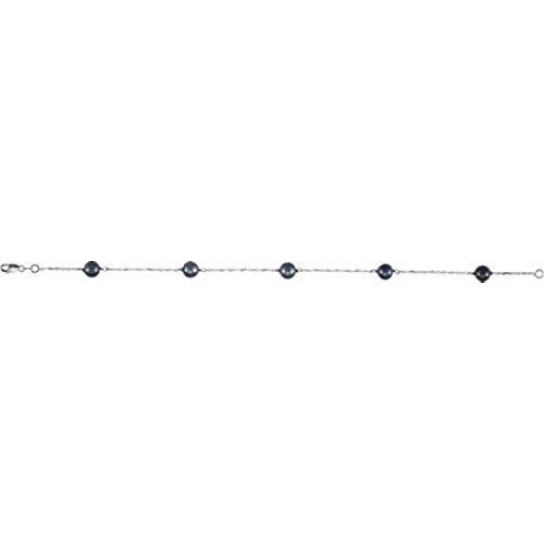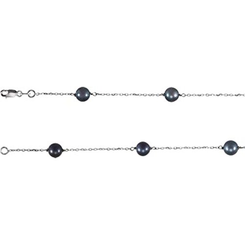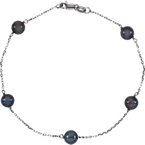 -. Title : 5 mm Cultured Black Pearl Station 7" Bracelet in 14k White Gold
