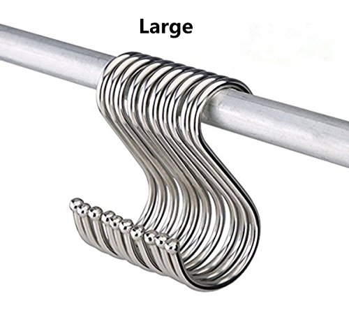 Soqool Stainless Steel Hooks Shower Curtain Rings- 10 Pack S Shaped Hanger Closet Hanging Hooks Kitchen/Bathroom/Office Hooks for Hanging a Multitude of Items(Large)