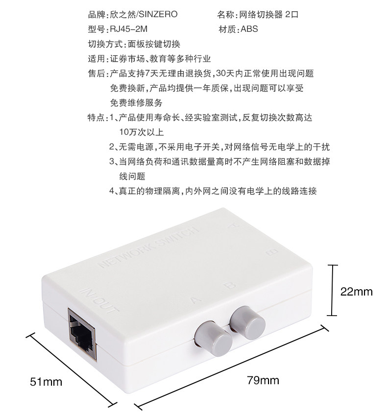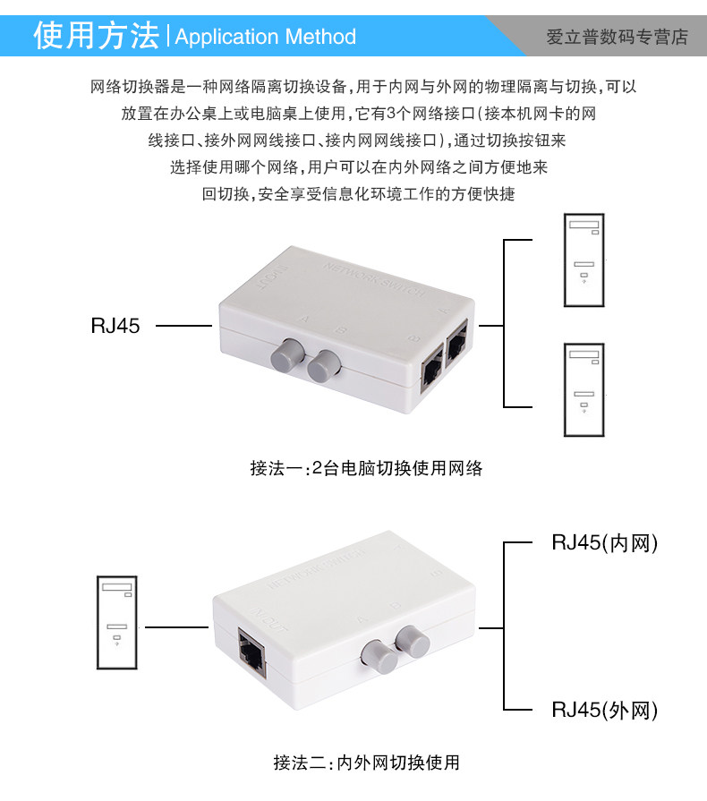 网络共享器 内外网切换器 二进一出 免网线插拔 二口
