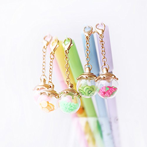 -. Title : 5 pcs/Lot Detachable pendant gel pen Fruit & Luminous wish ball black ink pen Gift Stationery office school supplies