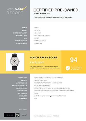 -. Feature : Omega De Ville 4813.30.01 with 7 band, stainless-steel bezel and silver dial / Authenticated by WatchFacts. Grade Rating: 94 / Condition: Excellent / No papers offered with this watch / Automatic-self-wind movement / Watch year: 2005