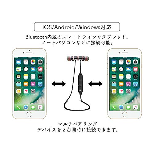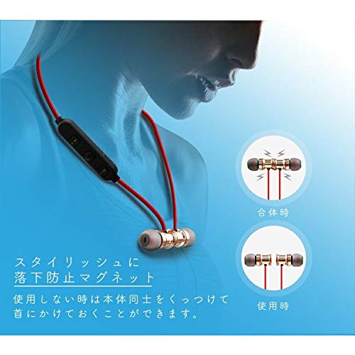 マグネット搭載:使用しない時は首に回したまま耳から外してそのままマグネット同志を付ければ首輪状になり落下防止につながります。さらに便利な電源ON/OFF、左右のイヤホンの背面を離すだけ、電源ONにします、合わせると、電源OFFにします。