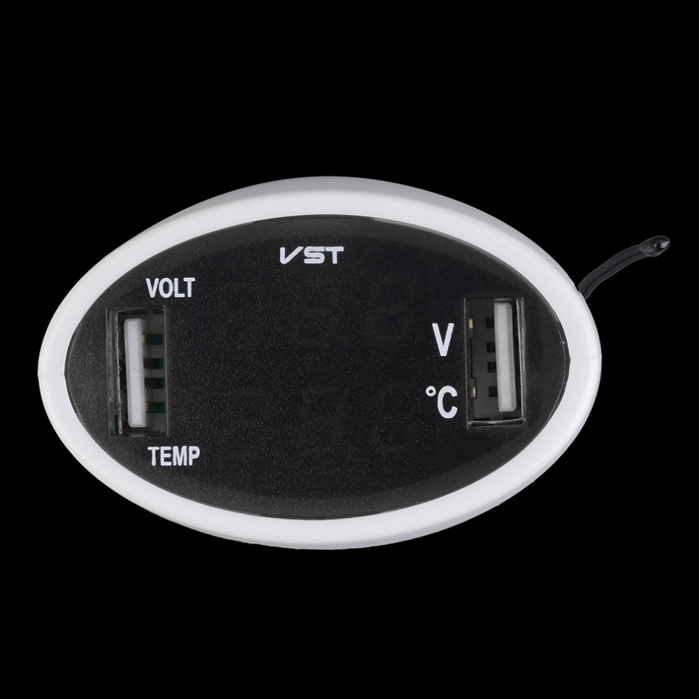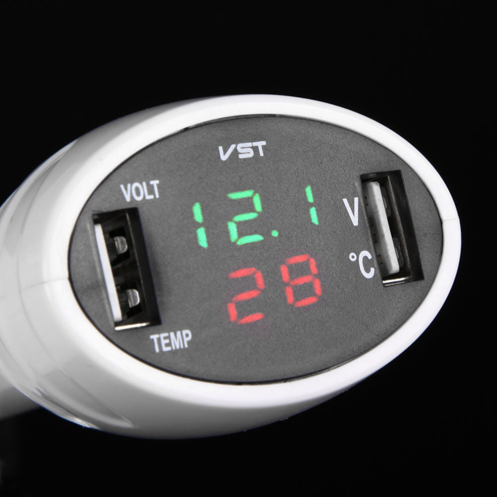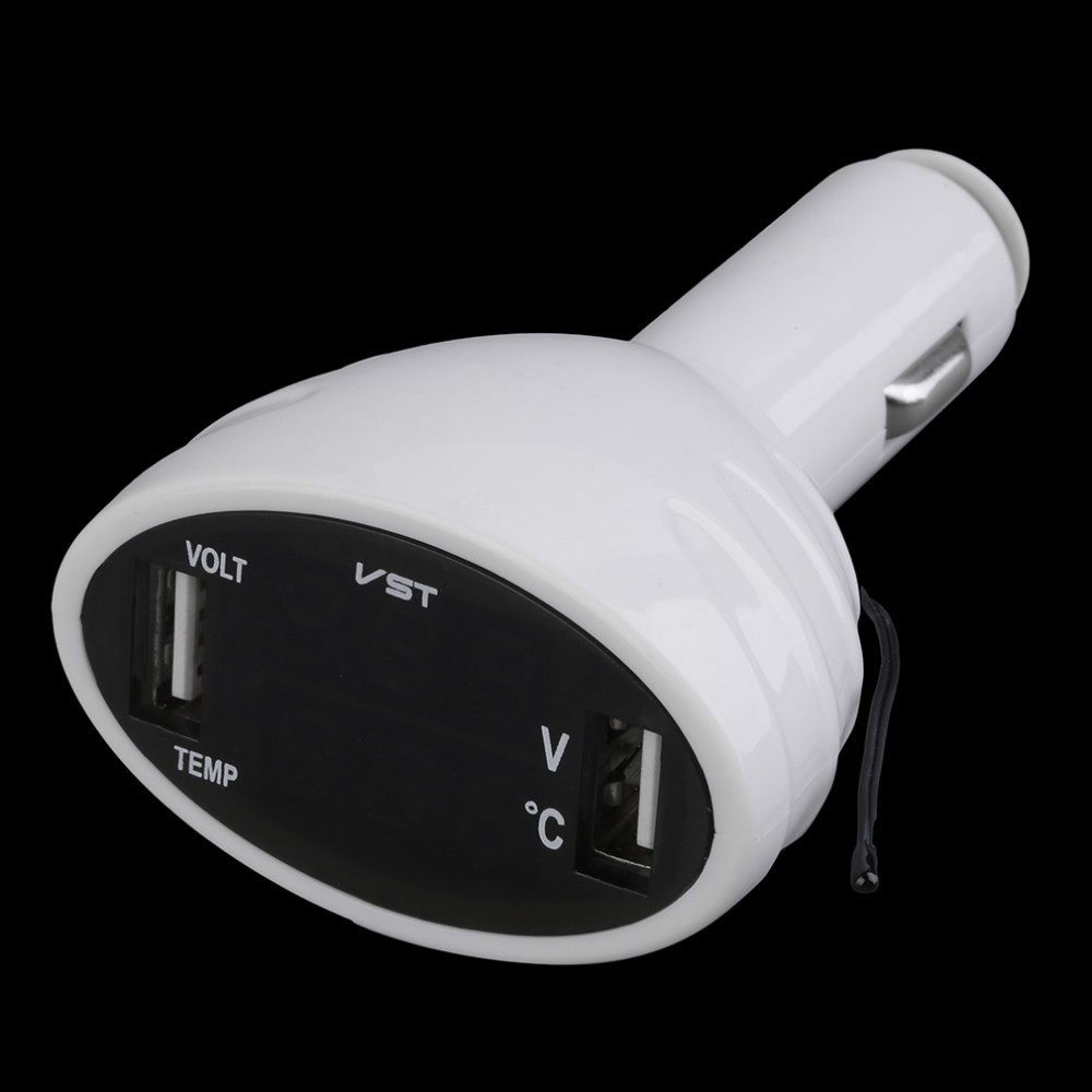 1x 3-in-1 Multifunction Car Voltmeter Thermometer Dual USB Chargera