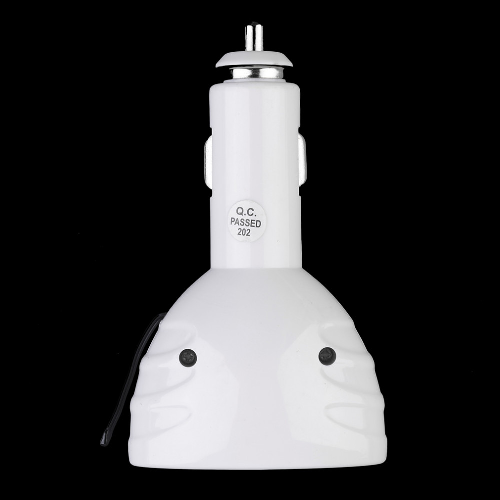 Plug the product into the car cigarette lighter port, 2.1A dual USB can charge for phone, digital cameras, DVs, tablet PC etc.