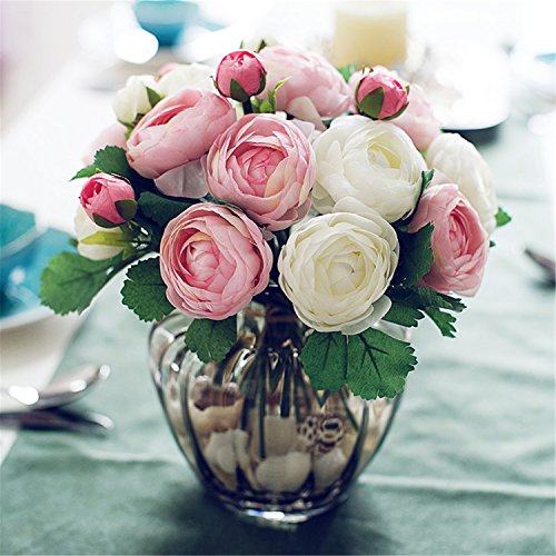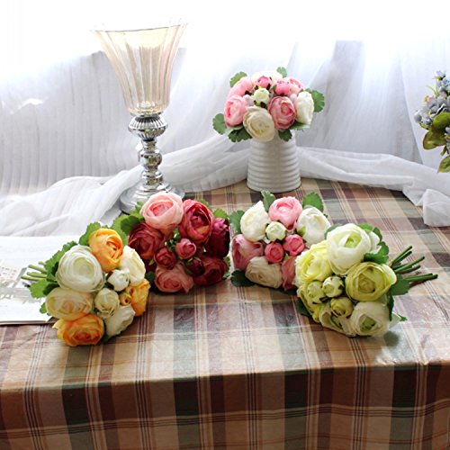Felice Arts Artificial Flowers 10" 10 Head Silk Artificial Tea Rose Flower for Wedding, Room, Home, Hotel, Party Decoration and Holiday Gift