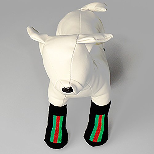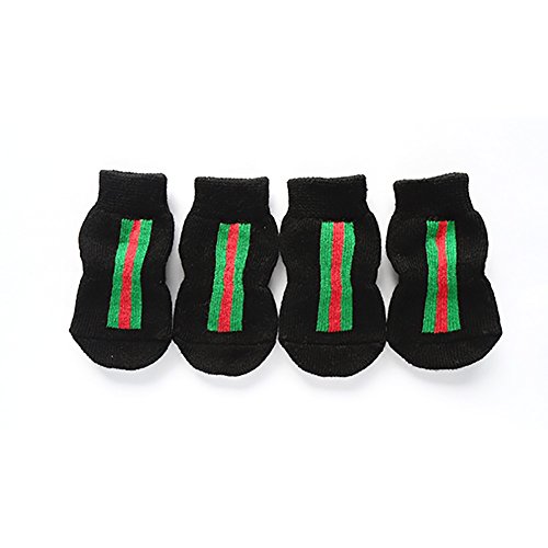 -. Title : EFINNY Puppy Pet Dog Striped Soft Non-slip Short Socks Black 4pcs/Set