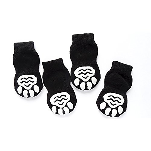 -. Feature : Socks Material: Knit Cotton / Anti-slip design, protect dogs from sliding on hardwood floors, foots Paw Protectors,can wear in outdoor or home. / It's the Asian size will Small than the US size, and it's Fits for Small Dog / Easy to carry and use, keep pet dogs paws clean and thus allowing it to climb up you. / Package Includes: 1 set/4pcs Puppy Pet Dogs Socks
