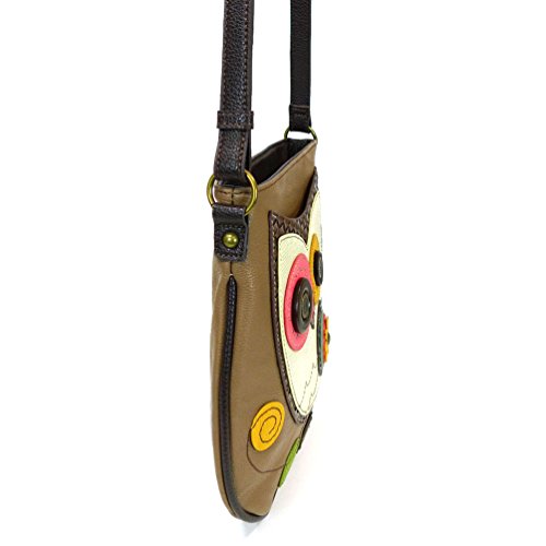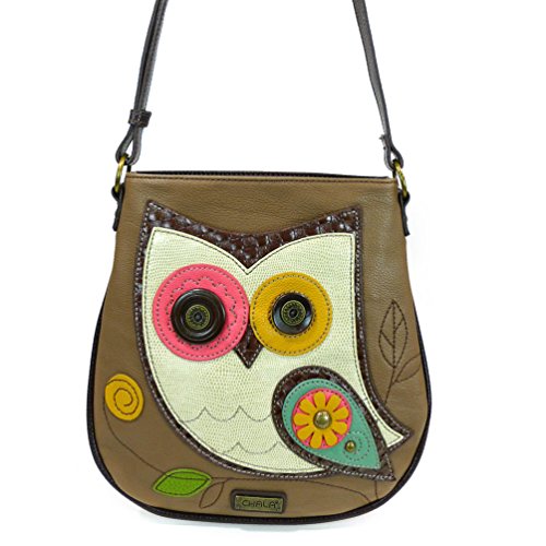 Hoohoo Owl Deluxe Crossbody Compact, light, convenient. Playful Owl comes with detailed stitching and bonus leaf and flower appliques! Owl is also a front pocket! Top zipper closure Patterned fabric lining with slide pockets & zippered pocket Also has an adjustable strap and rear slide pocket. Perfect for phones! Materials used: Faux Leather Color: Brown Approx. Measurements: 10.5 x 1.5 x 10.75 in Strap adjustable: 13-26 inFeature