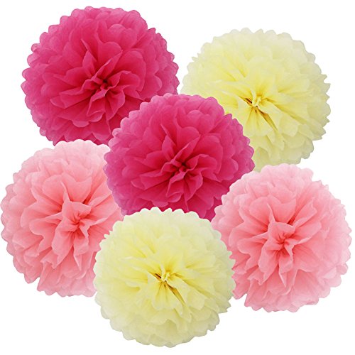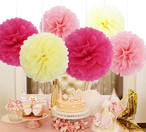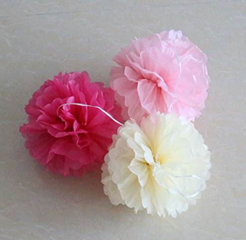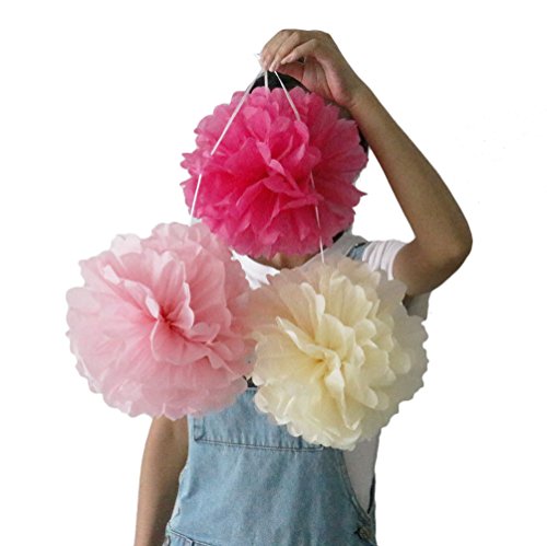 SOOKOO 15 Pieces 10 inch Tissue Paper Pom Poms Flower Balls Assorted Colors For Wedding Party Outdoor Decorations, Pink, Cream, Rose Red
