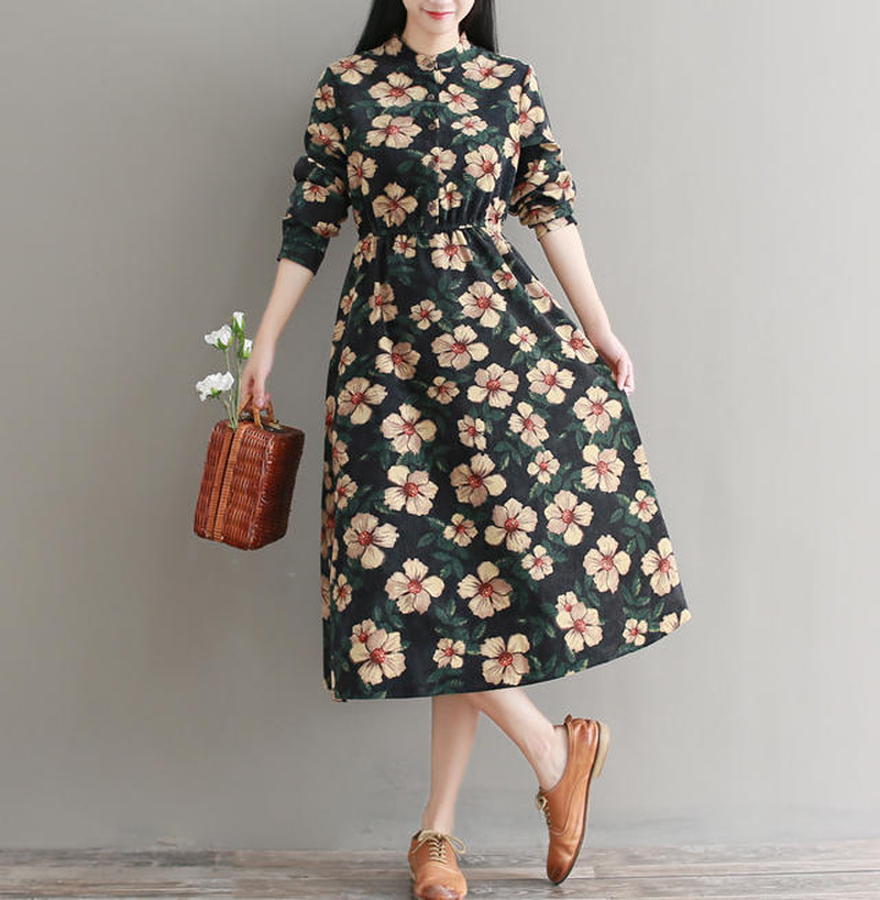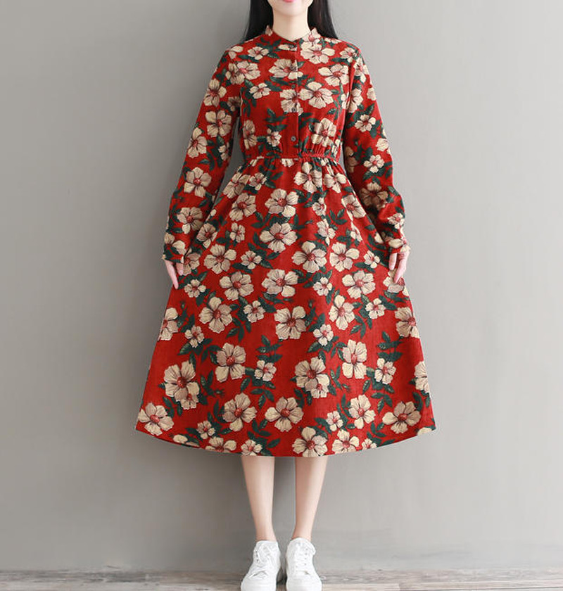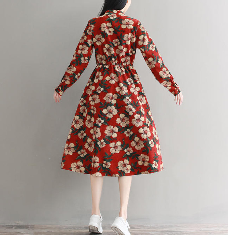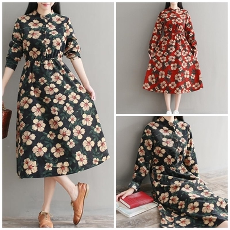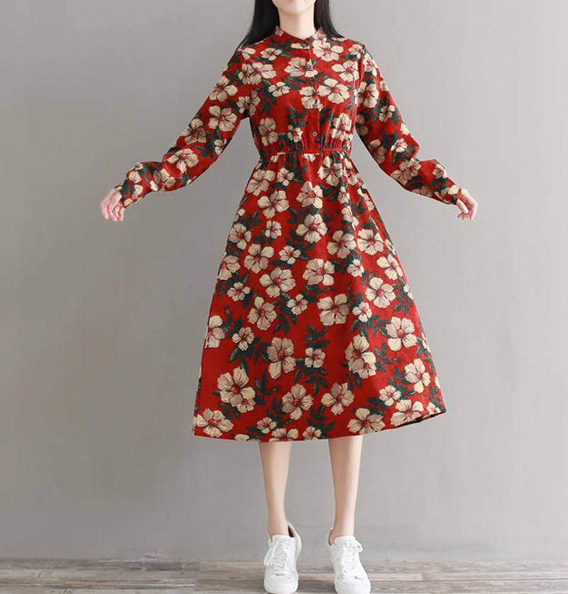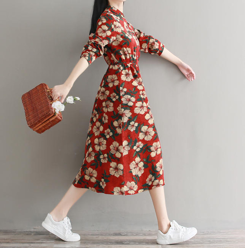 | ♢サイズ♢(cm) M 肩幅:37 ウエスト:68-94 胸囲:92 着丈:111 L 肩幅:38 ウエスト:72-98 胸囲:96 着丈:112.2 XL 肩幅:39 ウエスト:76-102 胸囲:100 着丈:113.4 2XL 肩幅:40 ウエスト:80-106 胸囲:104 着丈:114.6 ♢カラー♢ ブルー、レッド ♢ポイント♢ レトロな雰囲気がおしゃれな花柄ワンピースです。 ウエスト高めにバンディング処理が施され、脚長効果にも嬉しいデザインです♪ 【商品について】