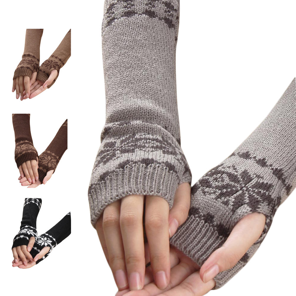 Winter Autumn Warm Snowflake Gloves Keyboard Leak Finger Knit Gloves