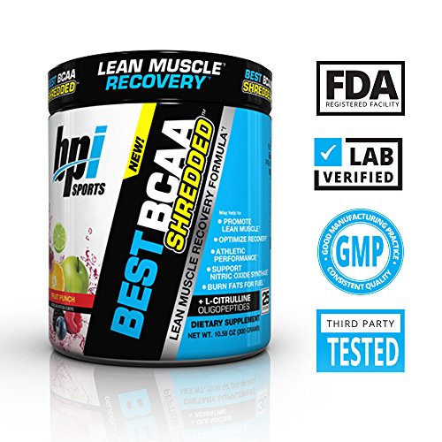 BPI Sports' Best BCAA Shredded is a caffeine-free thermogenic recovery formula that pairs branched chained amino acids (BCAAs) and Citrulline oligopeptides. The oligopeptide technology is used in this thermogenic recovery formula for their superior bioavailability, resulting in optimal absorption rates and quicker muscle repair. If you're looking to build lean muscle, Best BCAA Shredded can be your go-to sports supplement since it also features clinical doses of Carnitine known for its lean muscle growth power. Aside from increasing nitric oxide for more blood flow and pumps, Carnitine converts long chain fatty acids into energy. In other words, it helps burn fat for energy resulting in a leaner body and more muscle definition. Finally, Best BCAA Shredded has Grains of Paradise for more shredding power. It helps your body convert white fat cells into brown fat cells, further pushing your body to utilize body fat as energy for even more shredding power. For even more muscle recovery benefits, stack BPI Sports' Best BCAA Shredded with Best BCAA throughout your day.Feature