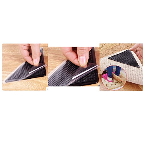 -. Feature : 100% brand new / Prevents curled corners, bunches, slip and trips / Prevent slips and trips on area rugs; keep your rugs looking neat and tidy / Press and stick on hard flooring or tile