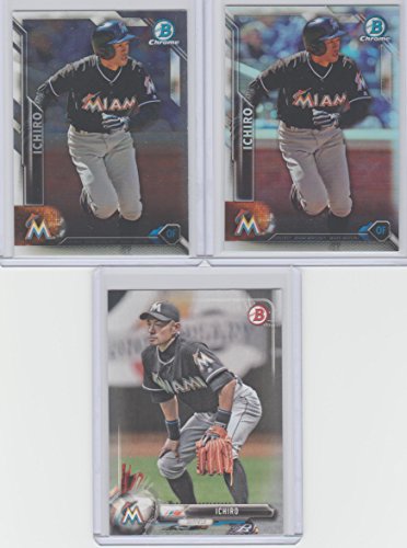 Ichiro 3-Card Bowman Lot: 2016 Bowman Chrome + Refractor /499, 2017 Bowman Marlins Star