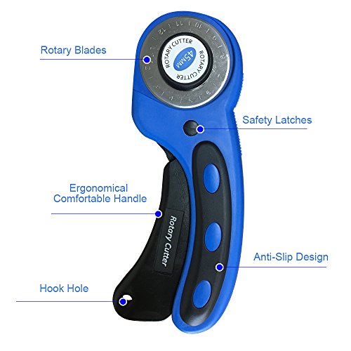BMBZON 45mm Rotary Cutter for Fabric Cutting Scrapbooking, Seamstress, Tailors, Arts Quilting Sewing Tool (Blue) (45mmRotary)