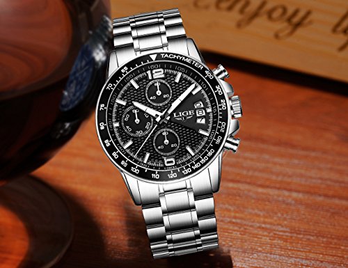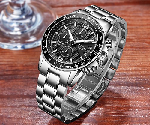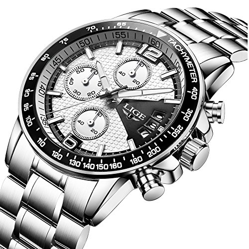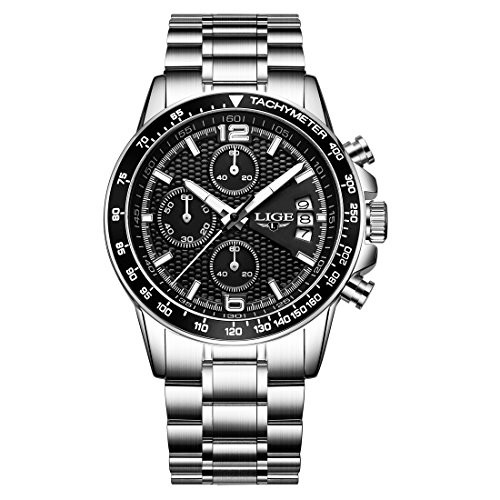 4. LIGE sport watch with stainless-steel case and band.