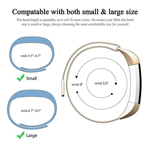 2.Imported Material, Abeky Fitbit Alta Bands is woven stainless steel mesh with an adjustable magnetic closure as original Apple Watch Milanese Loop band use. The smooth stainless steel mesh wraps fluidly around your wrist. And because it's fully magnetic, the Milanese Loop is infinitely adjustable, ensuring a perfect fit.