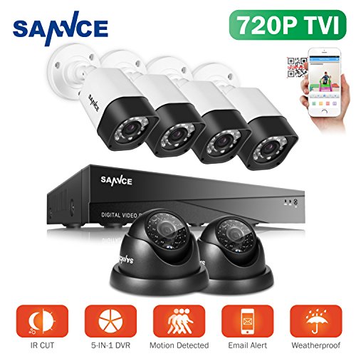-. Binding : Electronics -. Brand : SANNCE -. Feature : Clear 720P footage: Powerful AHD/TVI/CVI/CVBS/IPC 5-in-1 1080N security DVR with 720P HD indoor& outdoor cctv cameras / Smart motion-activated alarm: Receive alarming email on your phone when unexpected movements are detected / Day and night: up to 66ft/20m spectacular night vision range for true around-the-clock protection / P2P remote access: Watch live monitoring video, record and playback on Android and iOS devices anytime anywhere / Professional certification: CE, FCC certification, HDMI certified member and qualified power supply -. Label : sannce -. Manufacturer : sannce -. Model : SU-DG81CP0-14DC-12DS#USA -. MPN : SU-DG81CP0-14DC-12DS#USA -. PackageQuantity : 1 -. PartNumber : SU-DG81CP0-14DC-12DS#USA -. ProductGroup : Photography -. ProductTypeName : SURVEILANCE_SYSTEMS -. Publisher : sannce -. Studio : sannce -. Title : SANNCE 8 CH 720P/1080N DVR Video Security Surveillance System and (6) HD 720P Weatherproof Indoor/Outdoor CCTV Cameras with Night Vision and Motion Detection, NO HDD