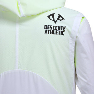 터프 우븐 소재를 사용한 후드 일체형의 웜업 자켓입니다.