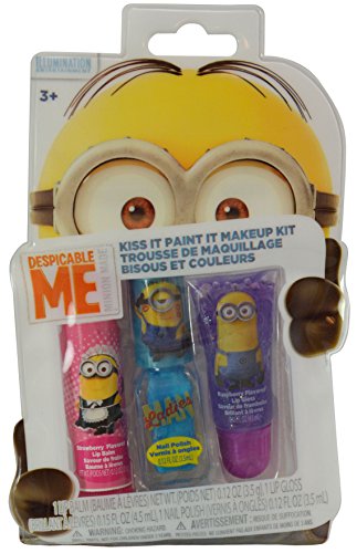 Product DescriptionMinions 3pc Kiss It Paint It Makeup Kit in Shaped PVC Package0