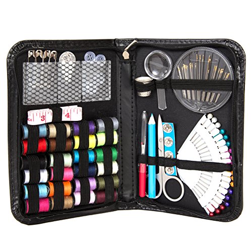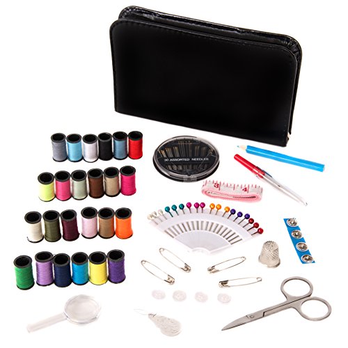 • WHILE OTHER SEWING KITS have needles that snap easily, threading that frays, and case zippers that break on first use, the Kadin Homes Sewing Kit comes with over 120 premium sewing items, includes high-quality stainless steel needles, and the Oxford leather case has a timeless, sophisticated look. This means you'll ENJOY sewing more, and have everything easily accessible, in one convenient case.