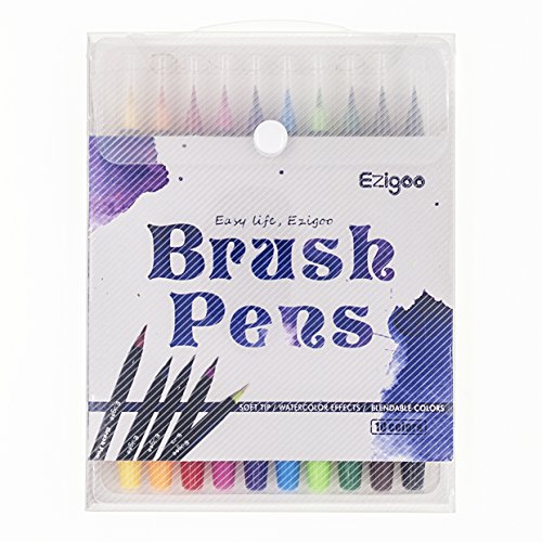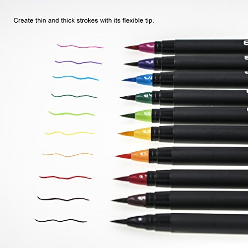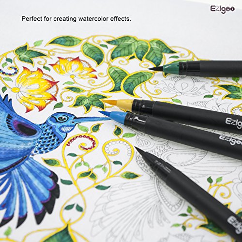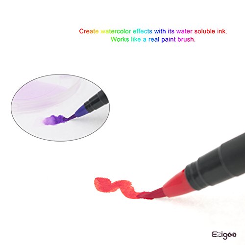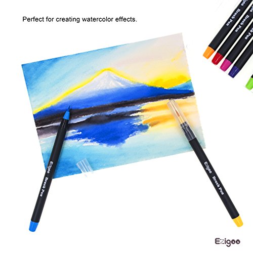 Brush Pens Watercolor Set - 10 Colors - Brush Markers with Soft Flexible Real Brush Tip Create Watercolour Effect - Ezigoo