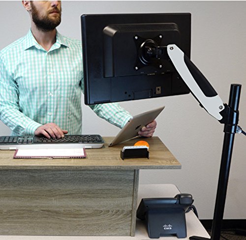 Sit-Stand Desk Mount Monitor Arm Adjustable Hydraulic Arm by Vision Mount - Support your monitor at the correct height for ergonomic comfort (Standard, Single Screen, White)
