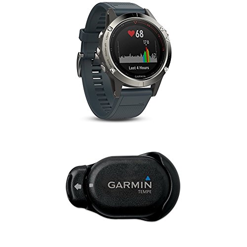 -. Title : Garmin Fenix 5 - Silver with Granite Blue Band and Temperature Sensor for the Fenix Outdoor Watch