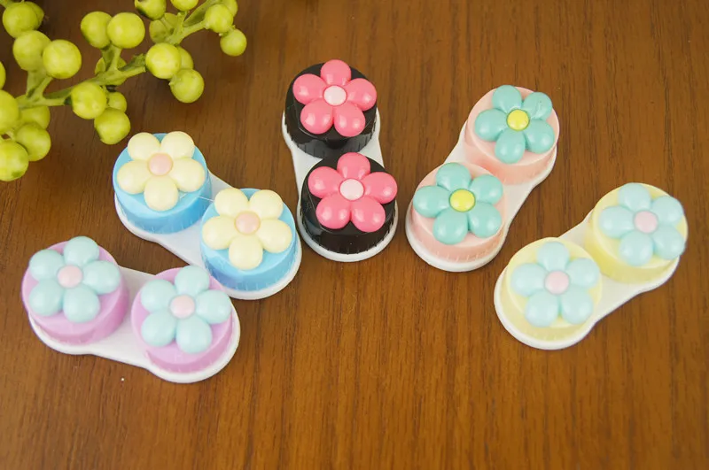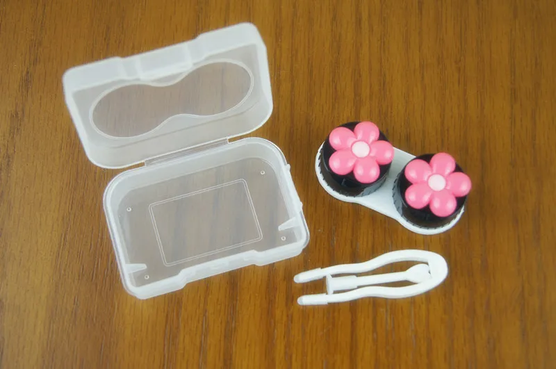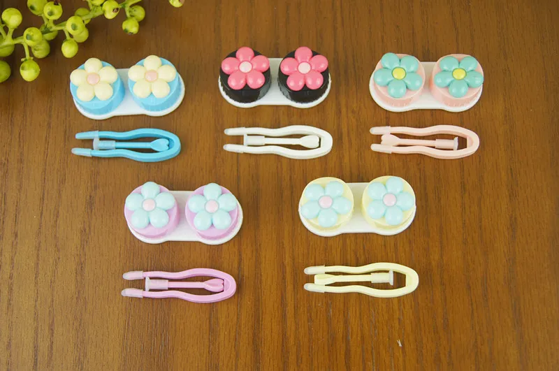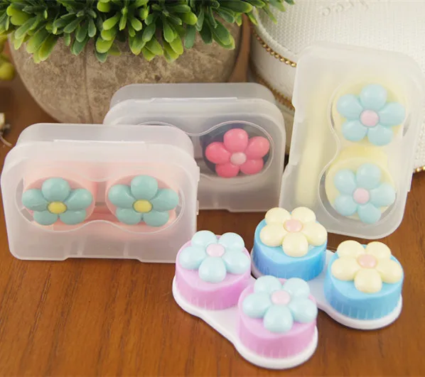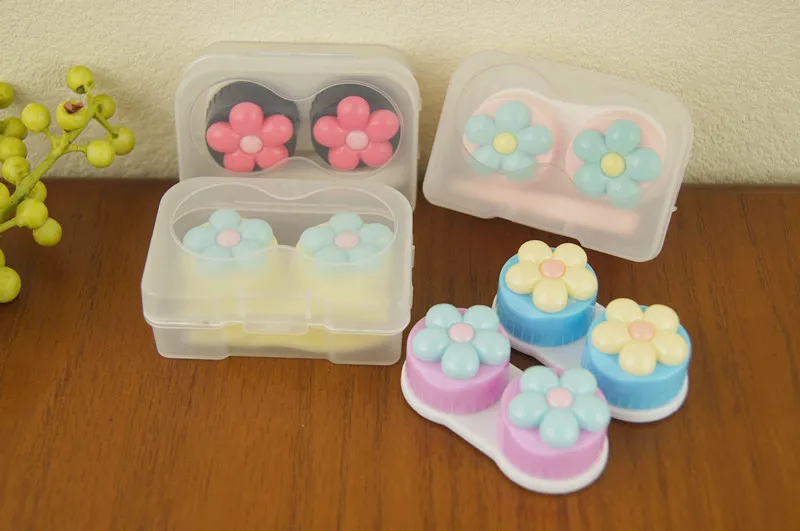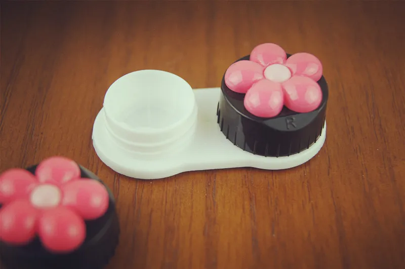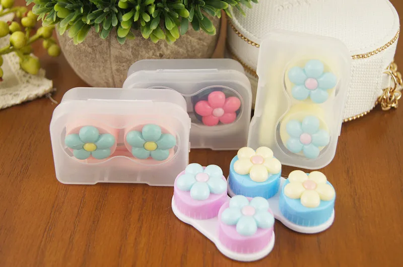 꽃 모델링 포켓 미니 콘택트 렌즈 케이스 여행 키트 쉽게 캐리 거울 컨테이너 렌즈 안경 상자 눈 케어 키트 K010