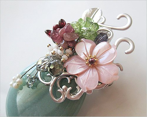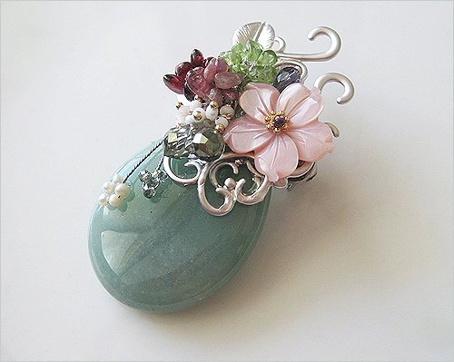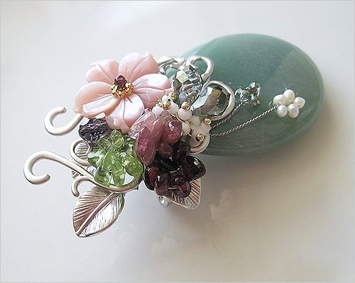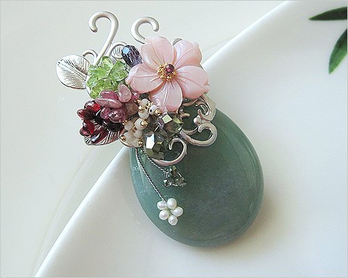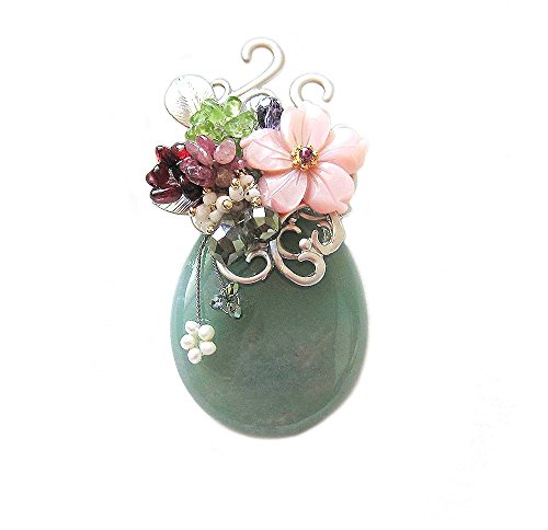 -. Feature : Size : about 1.6" X 2.8" / Materials : Jade Stone, Mother of Pearl, Net Stone, Crystal Bead, Glass Bead, Brass Pin / Handmade Jade Stone Mother of Pearl Beaded Flower Brooch Pin Pendant Convertible / Made in Korea