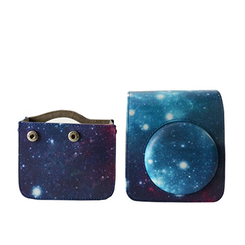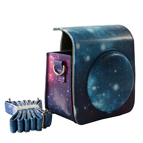 [Fujifilm Instax Mini 70 Case]-WOODMIN Exclusive Starry Sky Galaxy PU Leather Protective Fuji Camera Case with Shoulder Strap for Instax Mini 70 Camera (Blue)