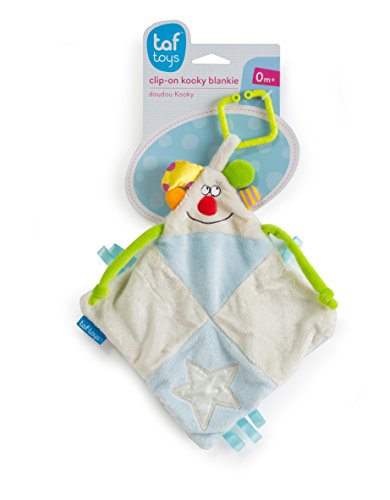 The Kooky Blankie Clip-on Stroller Toy from Taf Toys is a smiley kooky character that is also baby's first blankie. This plush play pal provides comfort and entertainment as their first attachment object and is the perfect seven-by-seven-inch size to clip on wherever baby goes!Feature