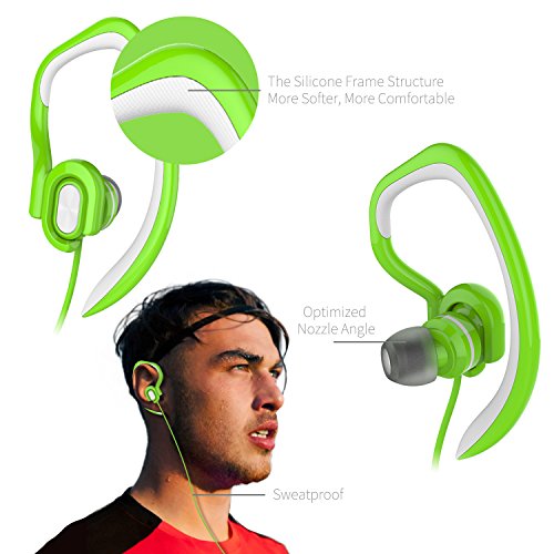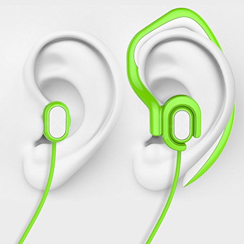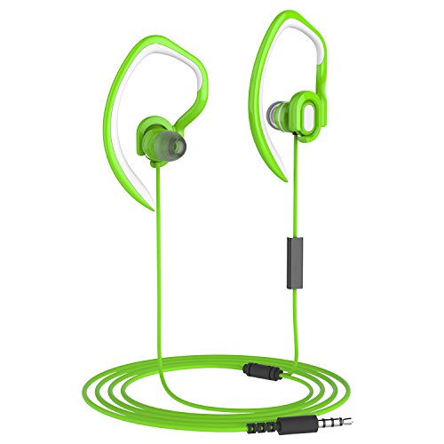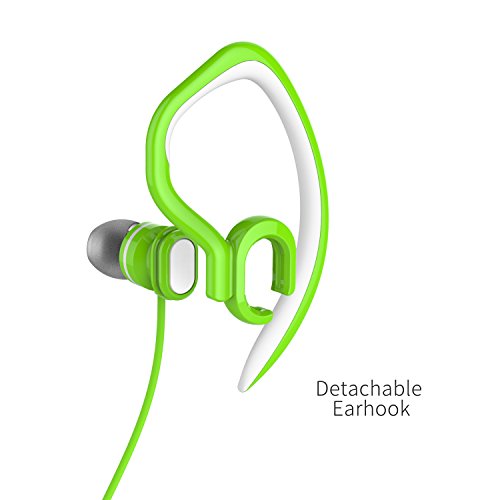 Detachable Earhook Running Earphone with Microphone and Hand-free Phone Call,Jogging Headset with 3.5mm Jack,Inner Ear Sports Lightweight Workout Headphone,Wired Earbud for Exercise,Green
