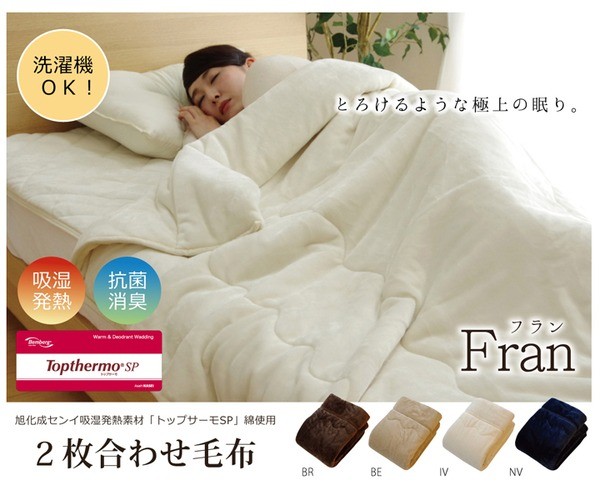 【商品名】毛布 セミダブル 洗える 寝具 抗菌 消臭 無地 旭化成 トップサーモ 2枚合わせ毛布 『17フランIT』 ネイビー 約160×200cm