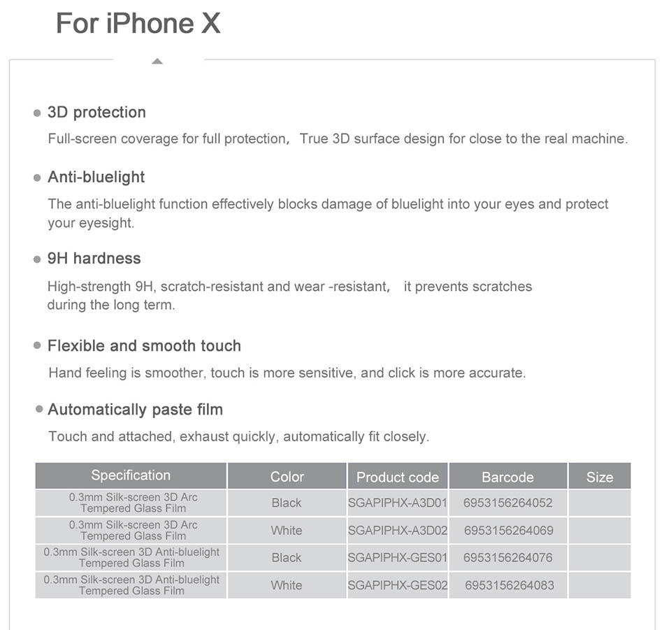 - Compatible Model :Tempered Glass For iPhone X Screen Protector